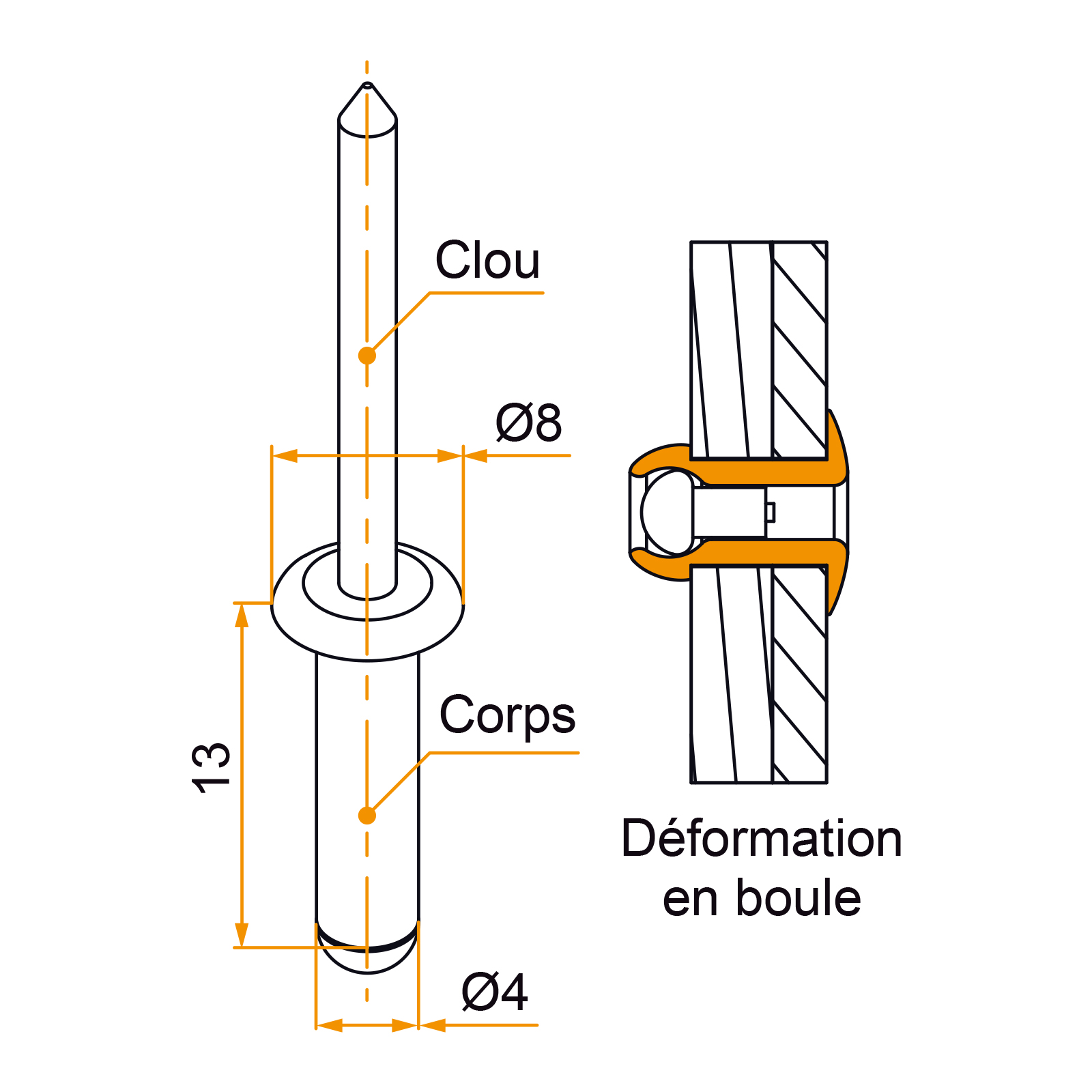 Rivet aveugle avec clou en acier – Ø4xL.13